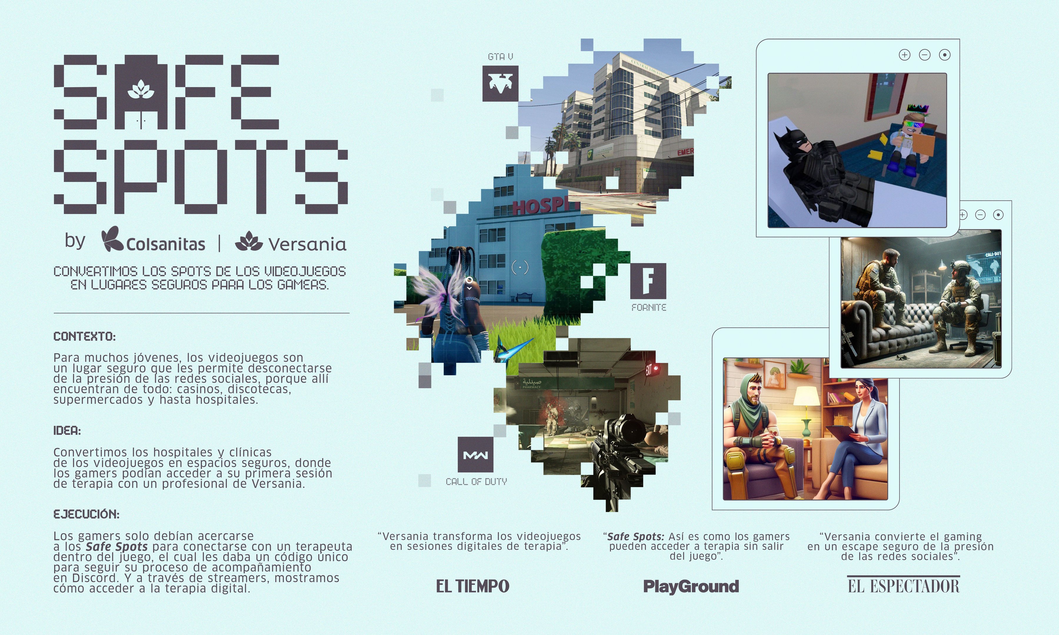 | descripción de la propuesta: | Para muchos jóvenes, los videojuegos son un escape de la presión de las redes sociales. Por eso, convertimos los centros de salud dentro de los juegos en espacios seguros, donde podían acceder a su primera sesión de terapia con un profesional de Versania en tiempo real. Durante el juego, el terapeuta les daba un código para que se registraran en la plataforma de Versania, y continuaran su acompañamiento psicológico a través de Discord. Y para que todos los gamers pudieran enterarse de esta iniciativa, nos aliamos con los streamers más reconocidos del país, quienes durante sus transmisiones, mostraban cómo acceder a la terapia dentro del mundo digital. Así, su refugio digital también se convirtió en un apoyo para su bienestar mental. |